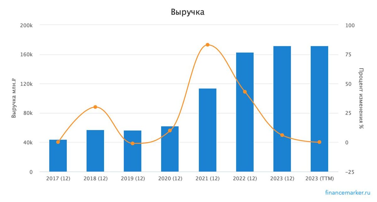 По данным компании Global Ports, контейнерный грузооборот морских терминалов в портах России по итогам 2023 года увеличился на 15,5% до 4,72 миллиона TEU. Будучи одним из крупнейших операторов в России, ДВМП должен был бы воспользоваться позитивной конъюнктурой, но что-то пошло не так. Давайте разбираться в подробностях. Итак, выручка компании за 2023 год увеличилась всего на 5,8% до 172 млрд рублей. Надо отдать должное ДВМП, ведь с доковидных времен выручка выросла более чем в 3 раза и начала замедляться лишь в прошлом году. 172 ярда - это рекордные значения по портовику. Правда портовиком его назвать можно с натяжкой. Если 2-3 года назад 20% выручки приходилась на портовые и стивидорные услуги, то в 2023 году их доля снизилась до 13%. Основной же бизнес лежит в плоскости транспортных услуг (операторских перевозок). Именно поэтому ДВМП продолжает наращивать свои внеоборотные активы. Флот за 2023 год увеличился в 2,5 раза до 47,4 млрд рублей в денежном эквиваленте, а подвижной (ж/д) со
