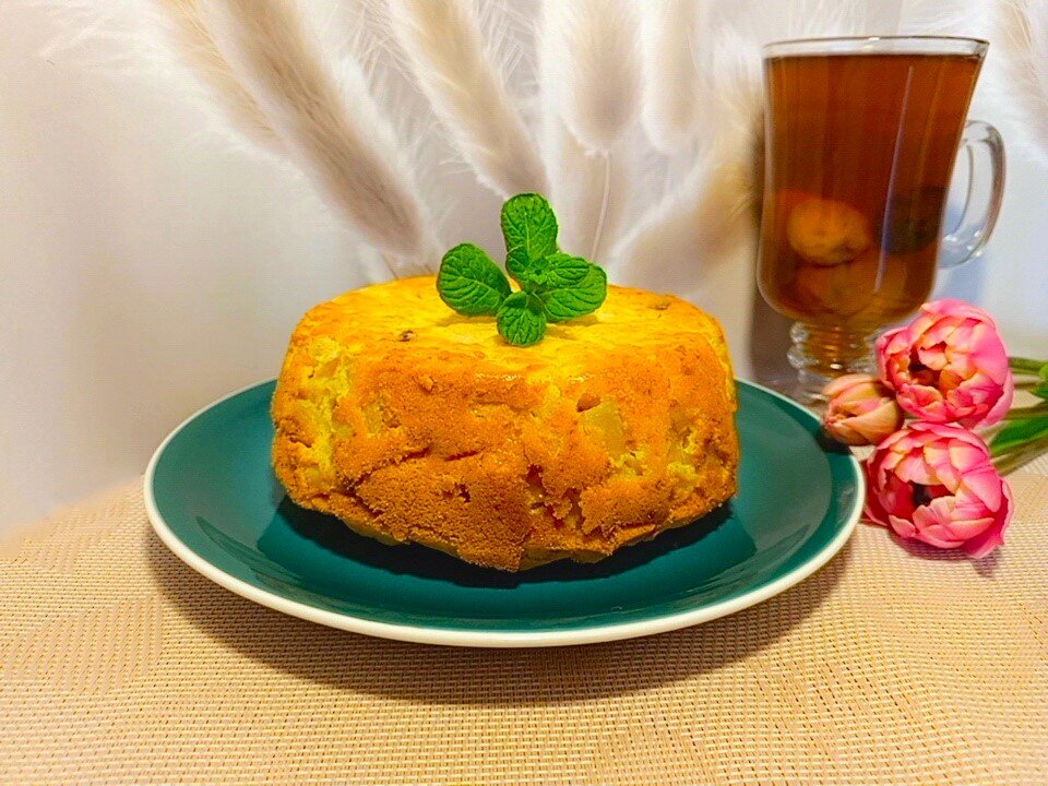 Яблоки почистить( можно не чистить, так будет ароматнее), порезать небольшими кубиками. Финики промыть, удалить косточки и также порезать небольшими кусочками. У меня яблоки были сладкие и финики дают сладось. Сахарозаменитель я не добавляла. Смешать финики с яблоками. Для теста яйца взбить миксером на высокой скорости до бела и увеличения объема. Добавить рисовую муку и разрыхлитель. Перемешать миксером. Затем всыпать яблоки и финики. Все перемешать. Форму смазать раст. маслом, на дно кружок пергамента. Выложить тесто, разровнять. Выпекать при тем. 180* 30 минут. Проверить готовность зубочисткой. Готовую шарлотку перевернуть на тарелку, остудить и можно разрезать. Угощайтесь!!!