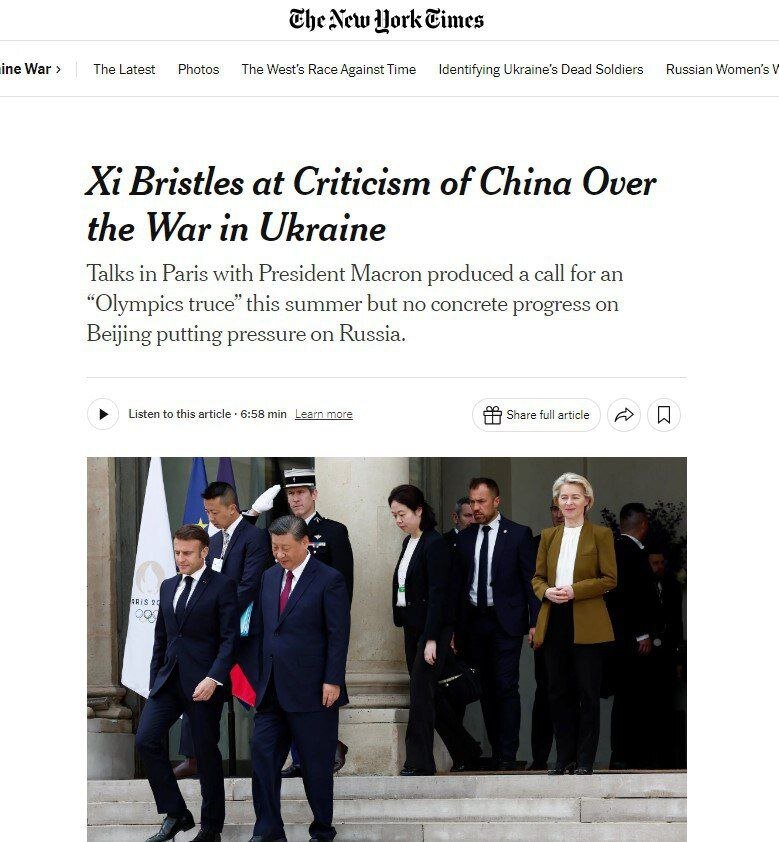 После переговоров с Макроном китайский лидер был возмущен, пишет New York Times. Европа хочет заставить Пекин надавить на Москву и закончить таким образом военные действия на Украине, и критикует Китай за дружбу с Россией.