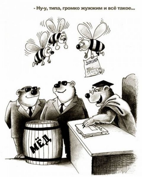 Всем хорошего дня! Мёд полезный продукт, как всем известно много бывает подделок, нечестные продавцы продают некачественный мёд. На эту "сладкую" тему предлагаю посмотреть для поднятия настроение несколько карикатур: пчёлы устроились на работу, пчёлы протестуют, пятачок не поел мёд, Российские пчёлы требуют, проверка дел в агропроме, медовый месяц, медведь заступился за своих пчёл..) Смотрим! Карикатура - пчёлы подали в суд Идет суд над пчёлами - по какому делу неизвестно.. Карикатура - пчёлы протестуют, устали работать Пчёлы против мёда.. Карикатура - чёрная полоса Карикатура - постыдились бы папаша, пчёлок объедать.. Карикатура - пчела с другой планеты Карикатура - не удалось поесть медку Карикатура - пчёлы против Пчёлы выступают против шоколадных батончиков. Карикатура - мишка приехал на проверку пчёл Представитель партии приехал проверить пчёл, как качественно они производят мёд). Карикатура - мошенник Мошенник продаёт "мёт". Карикатура - милый женился на любимой "Медов