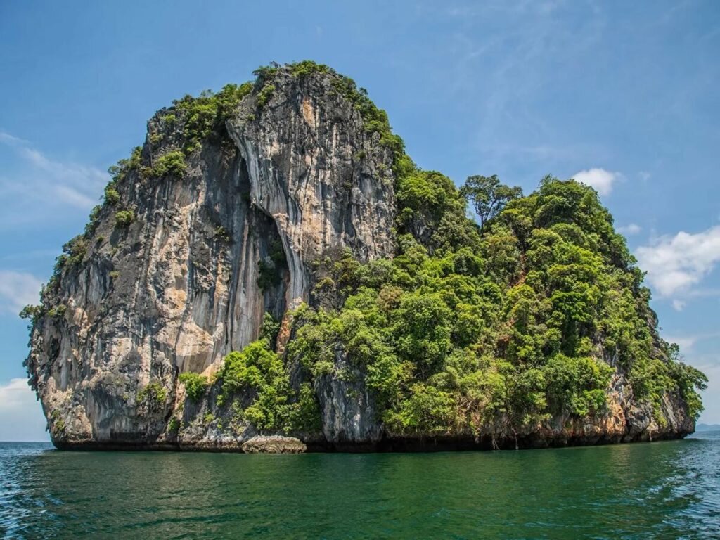На вулканическое происхождение острова указывает и неоднородность каменной породы. Время вымыло и выдуло более мягкую породу из базальтового основания и теперь мой остров весьма живописен. В скалах поселились редкие деревья, цепляющиеся за трещины, а птичьи базары, немногочисленные, но всё-таки, поставляют этим растениями питательные вещества.