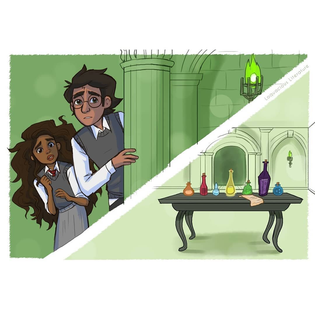 Сегодня у нас одна из сцен, которая не вошла в фильм "Гарри Поттер и философский камень". Создала комикс по этой сцене Кэти. И в ее багаже множество комиксов, созданных именно по книгам Джоан Роулинг, но не нашедших свое место в экранизации. Я могу странно относиться к автору, создателю комиксов, но не могу отрицать ее таланта. К тому же, я считаю, что это очень важная сцена для понимания происходящего, которую тем не менее вырезали, за что мне очень обидно. Но, благодаря Кэти, мы можем вновь увидеть ее. И видимо, чтобы создать новогоднее, поттерманское настроение, Питер решил подкинуть немного снека сегодня. Так что, пока здесь, и в Москве, последние взбрыки зимы - почитайте милые комиксы. Автор: Loquacious Literature