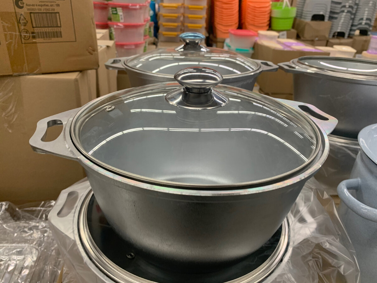 Начну с предложения, которое может заинтересовать всех кулинаров. В магазине "Светофор" вы можете приобрести кастрюли из литого алюминия объемом 4 литра, в комплекте с литыми алюминиевыми крышкой. Такие кастрюли, произведенные в России, обойдутся вам всего за 1094 рубля.