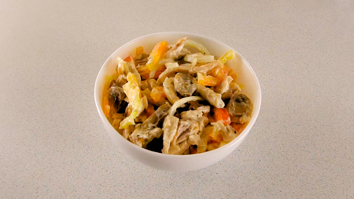 Самый любимый салат! Салат с куриной грудкой, грибами и болгарским перцем