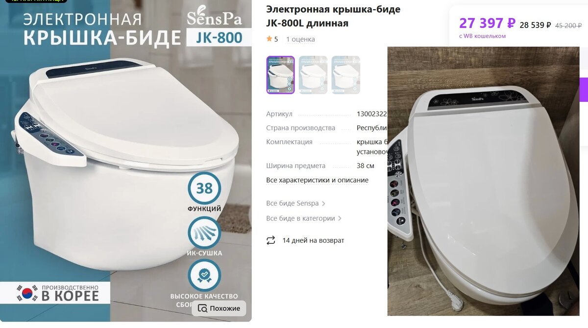 Я всегда за то, чтобы шагать вслед за современными решениями человечества, но будем откровенны, не каждый может себе позволить такую насадку себе. А так как мне не привыкать проверять каждую найденную мною новинку на ВБ, то удалось сразу же откопать приблизительно похожие варианты. В нем меньше функционала, но зато это доступна для массового покупателя и тем кому нужна только подмывка.