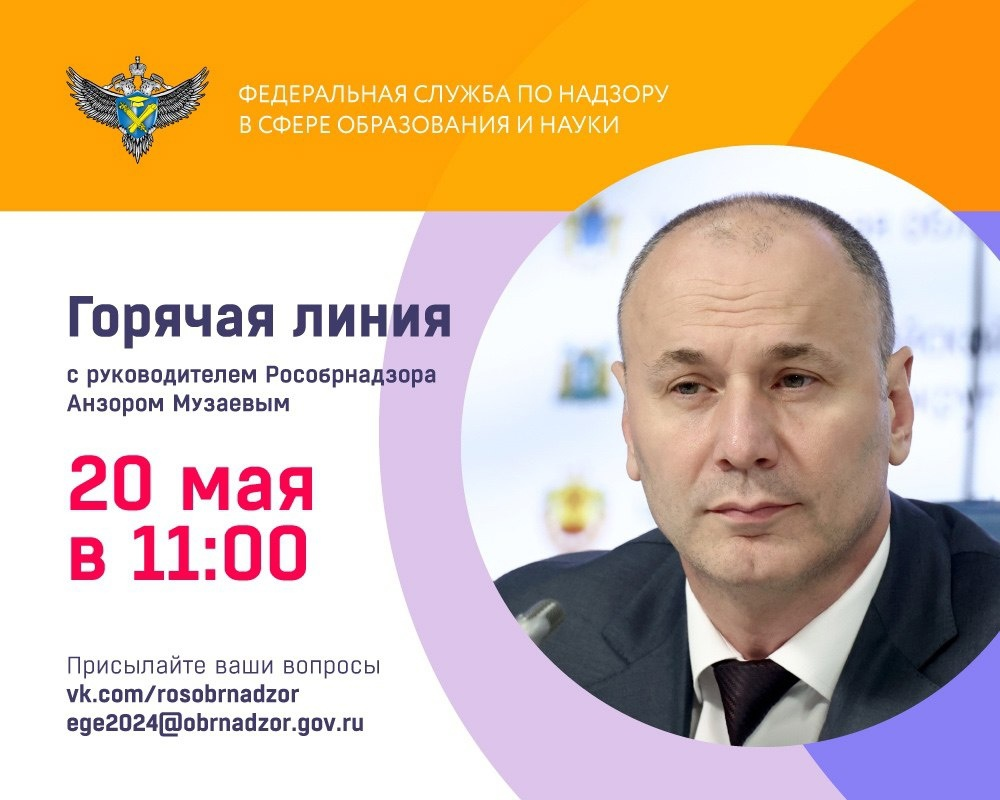 Руководитель Рособрнадзора Анзор Музаев и специалисты ведомства ответят на самые актуальные вопросы выпускников, их родителей и учителей, касающиеся:
