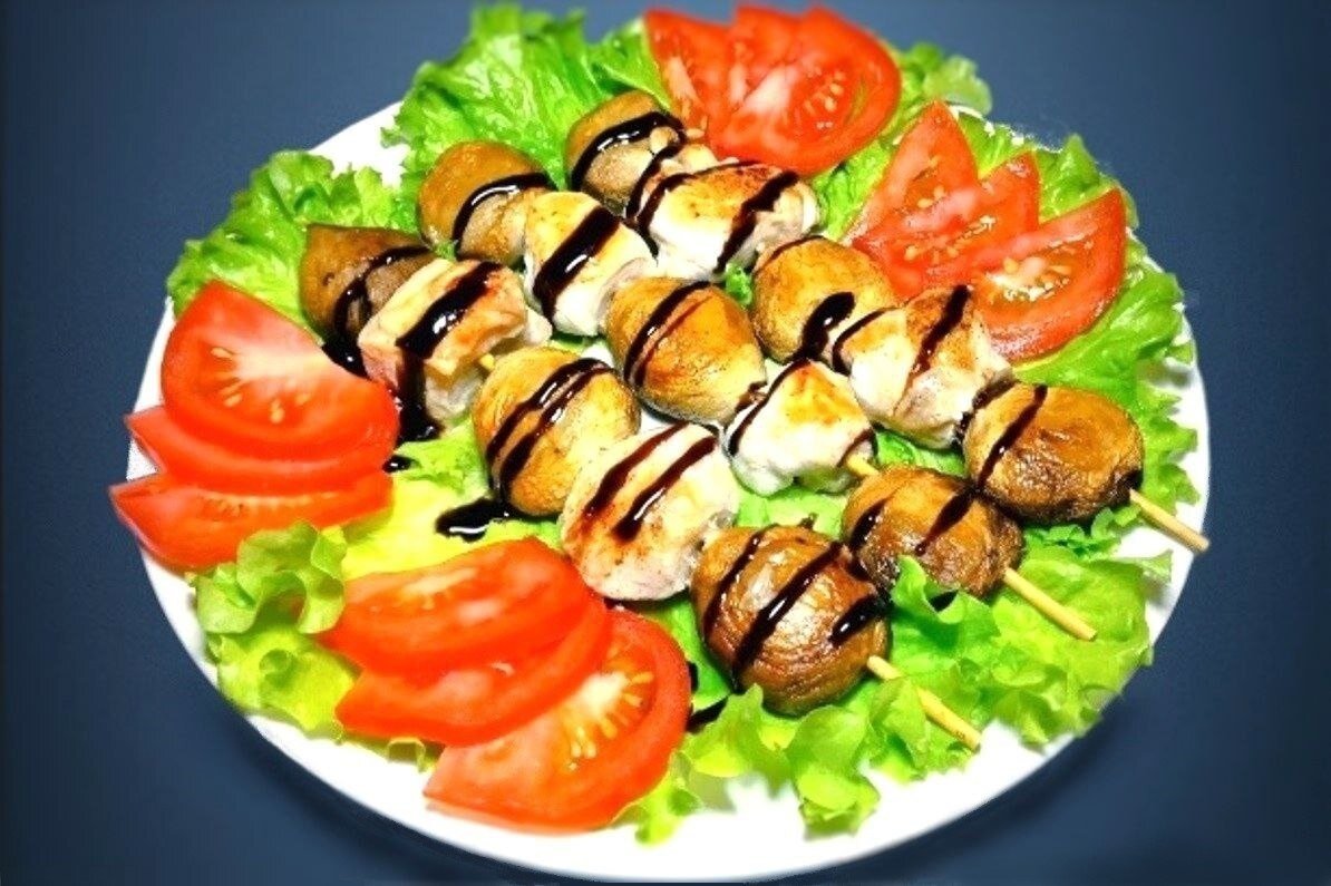 Шашлычки из куриной грудки и шампиньонов - идеальный ужин для себя любимой (может быть и любимого)