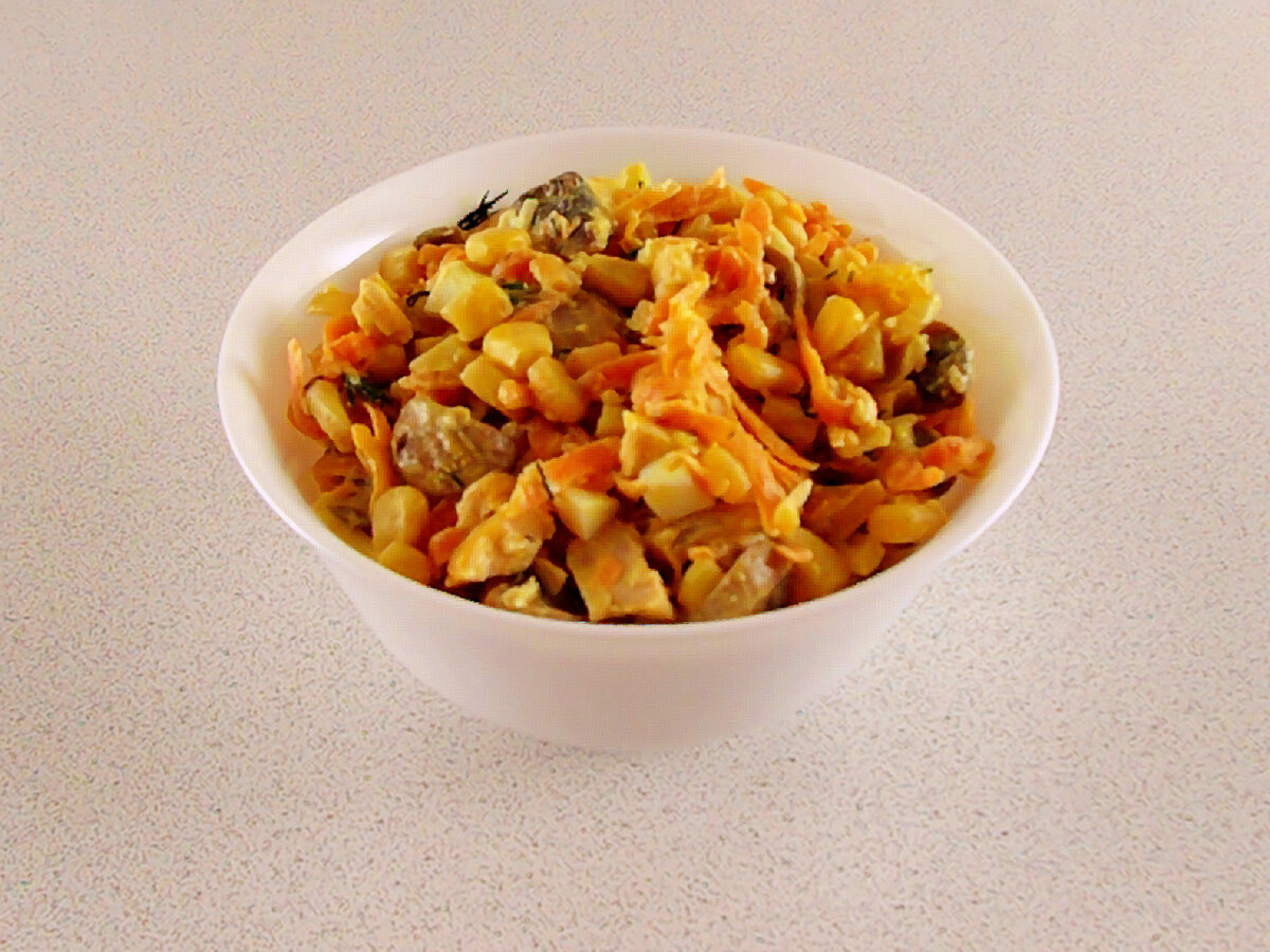 Этот вкусный салат съедается очень быстро! Белковый салат с курицей, грибами и кукурузой