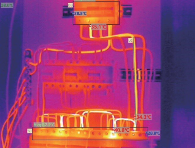 Работа различных электрических распределительных систем, а также систем организации цепей в электротехнической промышленности, предполагает применение большого числа электрооборудования. И самые разные причины могут приводить к его перегреву, что серьезно влияет на безопасность системы электропитания. Инфракрасные тепловизионные камеры используются для контроля распределения температуры энергосистемы во время работы. Благодаря тому, что тепловизионные камеры могут работать в круглосуточном режиме, а так же отсутствию необходимости прямого контакта с электрооборудованием, интуитивно понятному интерфейсу и точности, они могут быстро и легко находить скрытые опасные точки, надежным образом обеспечивая необходимый уровень безопасности в процессе эксплуатации электрооборудования. Проверка трансформаторного блока Если трансформатор находится на открытом воздухе в течение длительного периода времени, он подвержен более быстрому износу. Повреждения после перегрева и воздействия тока могут прив