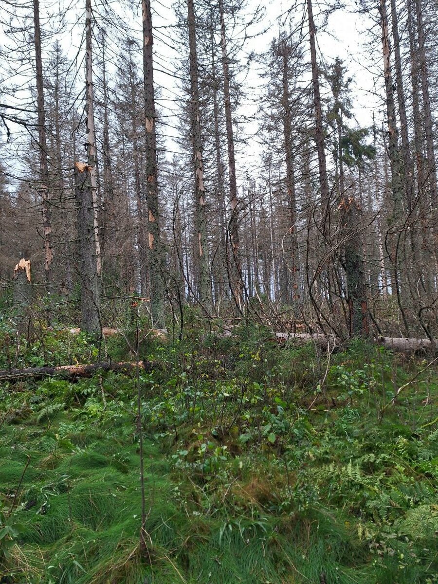 Сначала всё даже неплохо было, только ветер начал усиливаться. Мы плутали среди деревьев и всё больше удивлялись. Что-то интуитивно не так было. Деревья стояли без коры почти, земля шла холмами.
