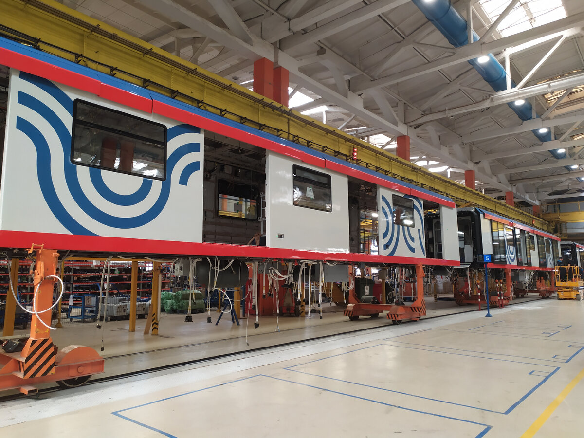 Скорости на «Метровагонмаше» – впечатляющие. Новая система сборки предусматривает 7 этапов: каждый из них максимально автоматизирован, благодаря чему скорость сборки поезда сократилась в 2,5 раза.