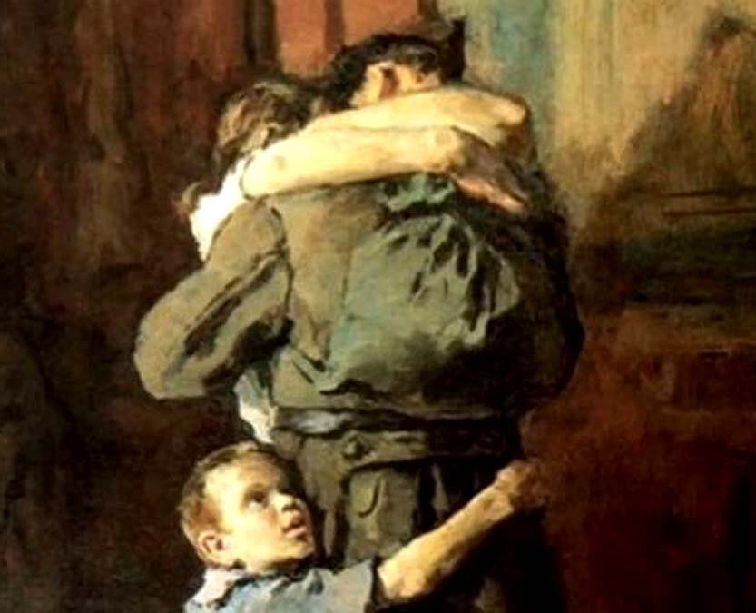 Вдруг в сенях хлопнула входная дверь, и послышались тяжелые шаги. Ни я, ни матушка не обратили на это никакого внимания, поскольку к ней часто приходили односельчане: тётя Нюра иногда приносила молоко, баба Зина - яйца, дед Егор - просто обсудить какие-то деревенские дела и что-то помочь по дому. Под конец войны, когда немцев отогнали от Москвы уже далеко, с продовольствием в нашем краю стало немного налаживаться, и те сельчане, кому было полегче, делились продуктами с теми, кому было тяжелее. Мой папа Саша был давно на фронте, поэтому маме одной было тяжеловато, а я был ещё слишком мал и пользы приносил