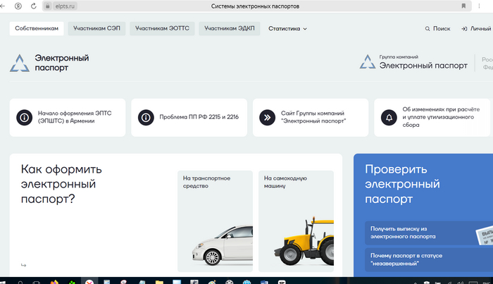 Для проверки автомобиля имеющего электронный паспорт не нужно регистрироваться на портале СЭП, для этого достаточно просто зайти на сайт СЭП После этого нам нужно нажать на вкладку "Личный кабинет" в правом верхнем углу P.S поддержи меня подпиской на ТГ-канал После этого мы попадаем во вкладку где мы видим "проверка по номеру ЭПТС" и "проверка по идентификационному номеру". Для проверки по номеру ЭПТС вам достаточно вбить номер электронного паспорта состоящего из 15 цифр. P.S поддержи меня подпиской на ТГ-канал P.S поддержи меня подпиской на ТГ-канал Как видим в описании выделенным желтым мы видим следующие результаты: Вид электронного паспорта; Статус электронного паспорта - и в нашем случае он ДЕЙСТВУЮЩИЙ, что очень важно учитывать при проверке автомобиля с ЭПТС, именно такой статус должен быть в базе СЭП; Сведения об уплате утилизационного сбора - РФ УПЛАЧЕН Сведения о выпуске (таможенное оформление) - ОТСУТСТВУЮТ Таможенные ограничения - ОТСУТСТВУЮТ Ограничения (обременения) за иск