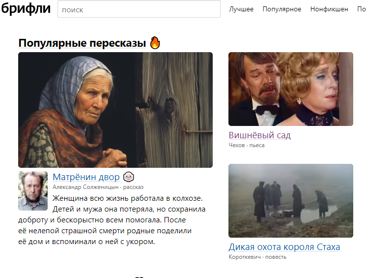 Десятиклассник смог. А ты? Школьник Алексей не очень любил читать школьную литературу. Он не был двоечником, но и тратить каждый день время на домашние задания тож не хотел. Кто этот школьник, который прочитал весь “список рекомендованной литературы”? - удивлялся Алексей. Но читать какие-то произведения все равно приходилось, и Леша решил сэкономить себе время. По сути, - размышлял он, - от ученика требуется только общее представление о книге. Вряд ли тебя заставят пересказать по главам “Капитанскую дочку”. Вряд ли, вряд ли. Алексей шел искать краткое содержание какой-нибудь “Грозы” в интернете. И почти ничего не находил. Вернее, находил, но на разных сайтах, с неудобной версткой, разного формата. Да и качество пересказа зачастую оставляло желать лучшего. То есть такой способ выполнения домашних заданий все равно занимал достаточно много времени. И тогда он решил сделать собственный сайт, где будет удобный интерфейс, качественные саммари и большой список всевозможной литературы. Так в