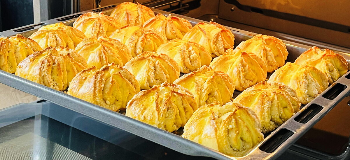 Тесто на кефире, Простой и быстрый рецепт. Самая любимая выпечка к чаю. Чудо, а не выпечка! Покоряет сразу, все в восторге. Чудесная выпечка с начинкой, которая идеально подходит как на каждый день, так и украсит любой праздничный стол. Съедаются мгновенно. Для начала надо приготовить простое тесто на кефире, оставить отдохнуть на 15 минут, за это время приготовить начинку с добавлением грецких орехов, тесто разделить на 2 части, закатать в колобок и каждый раскатать в прямоугольный пласт, равномерно смазать взбитым белком, равномерно распределить половину начинки и завернуть в рулет, затем разделить на порции, на каждую деревянной шпажкой надавить сначала по горизонтали и соединить верхний и нижний концы перевернуть снова надавить уже по вертикали и соединить боковые края как показано на видео рецепте. Полученные заготовки переложить на противень. Смазать желтком, после чего ставим в духовку при температуре 180 градусов на 25 - 30 минут и можно подавать на стол. Приятного аппетита
