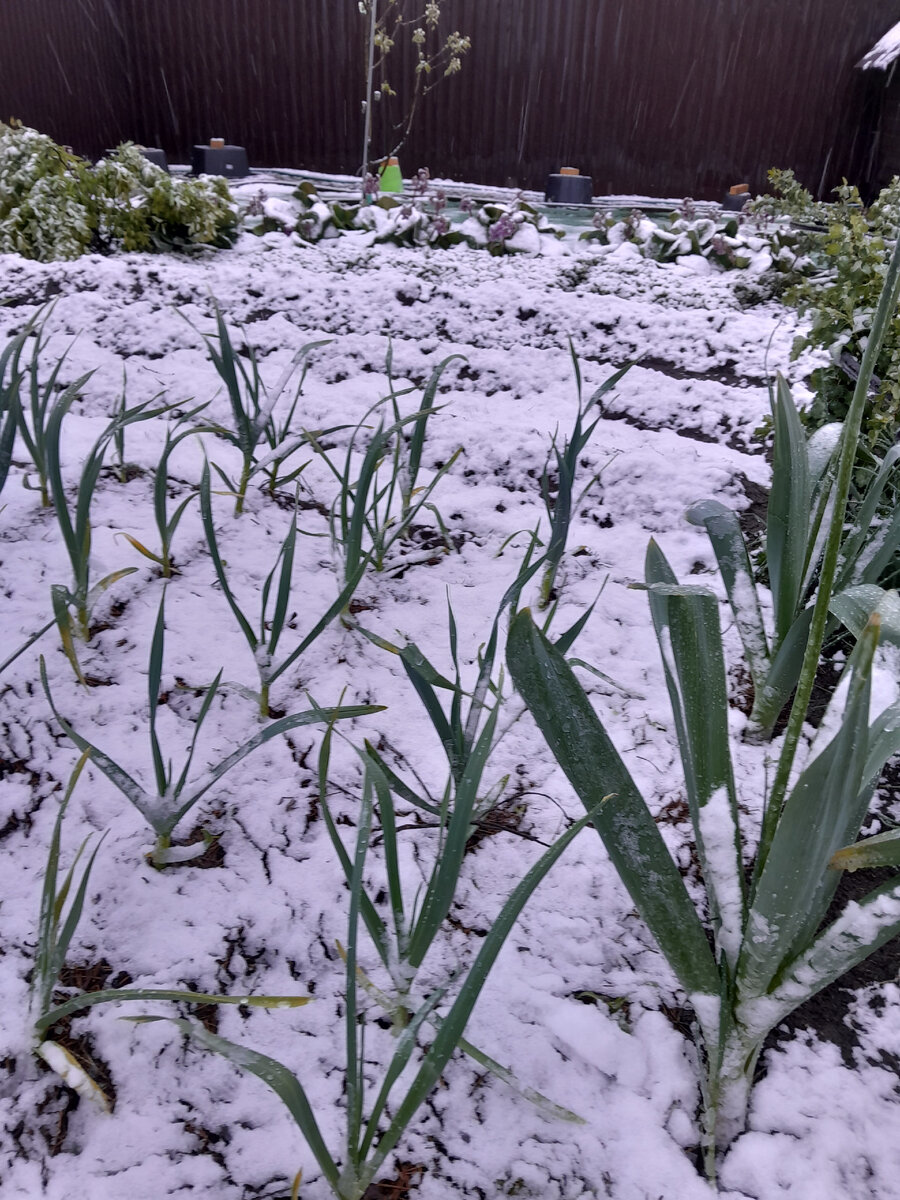 Сегодня к вечеру у нас в Рязанской стороне обрушилась зима! 7 мая на дворе! Весь день лил дождь, и резко пошел снег! За считанные минуты завалило сад! Метет уже час, это просто беда! Сначала снег с дождем был. А потом - просто снег... Как могла - скорее укрывать - три дня назад от мороза тоже укрывала. И вот снова... Тазы, ведра, мешки...😭😭😭 уж и не знаю - спасет ли... Не знаю - не будет ли хуже от пленки гортензиям? Три ближайших дня - очень холодно... не хотела бы снимать. Кто-то укрывал пленкой?подскажите! 🙏🙏🙏можно оставить? Сегодня вторник - до пятницы? Многолетники некоторые цвели... флоксы шиловидные, баданы... Яблони зацвели - и вот... Смородина и крыжовник полегли... Боюсь, что листья, уже промерзшие три дня назад, отвалятся. Сейчас на улице ноль. И самое страшное - заморозки не сегодня, а завтра обещают... не хотела бы убирать укрывку. Надеюсь, ветер не снесет. Засыпает все очень быстро снегом... эти фото - начало снегопада. А потом земли не видно стало. Утром эп