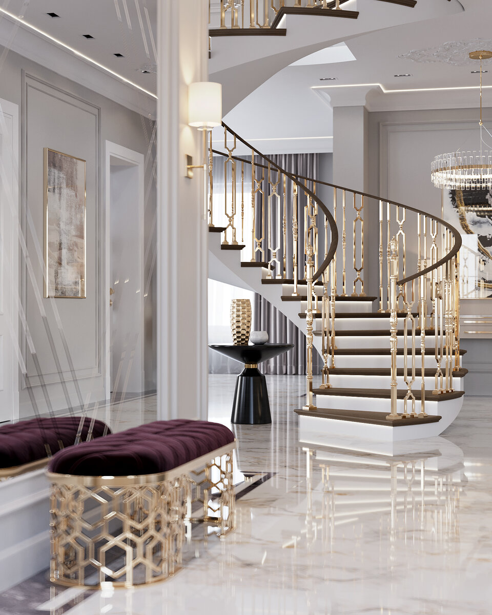 Эксклюзивный проект частного дома в городе Санкт-Петербурге, разработанный нашей студией. Дом расположен к красивейшем месте, в курортной зоне Приморского района с видом на Лахта-центр. Роскошный интерьер гостиной, выполненный в нашей любимой стилистике, элегантный и выразительный ар-деко🖤 Шикарная винтовая лестница безусловно является центром всей композиции вокруг которой строится весь интерьер. Мы очень любим использовать в наших проектах такие нестандартные оригинальные решения. Ярким акцентом этой гостиной является настоящий дровяной камин, источник тепла и уюта в доме.