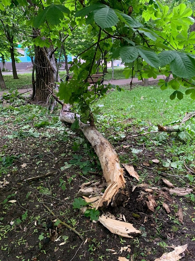 В парке Героев Гражданской войны (Бородино) упало аварийное дерево. Сильный ветер сломал ствол. Дерево абсолютно сухое и планируемое к сносу — под номером 18. Напомним, что в апреле начались работы по благоустройству парка. Планировалось снести 104 дерева, в том числе 26 здоровых, которые не соответствуют планировочным решениям. Но горожанам удалось отстоять здоровые деревья, их вырубать не будут. Всего снесут 73 дерева, 13 из них уже вырубили. Сегодня порывы ветра в Курске достигали 20 метров в секунду. Вечером в ГУ МЧС по Курской области сообщили, что ветер повалил восемь деревьев. Иван ПРОХОРОВ, фото автора Постоянный адрес новости на сайте «Друг для друга» ~ https://dddkursk.ru/lenta/2024/05/07/108354/. Новости Курска за ~ 7 мая ~ май 2024 года.