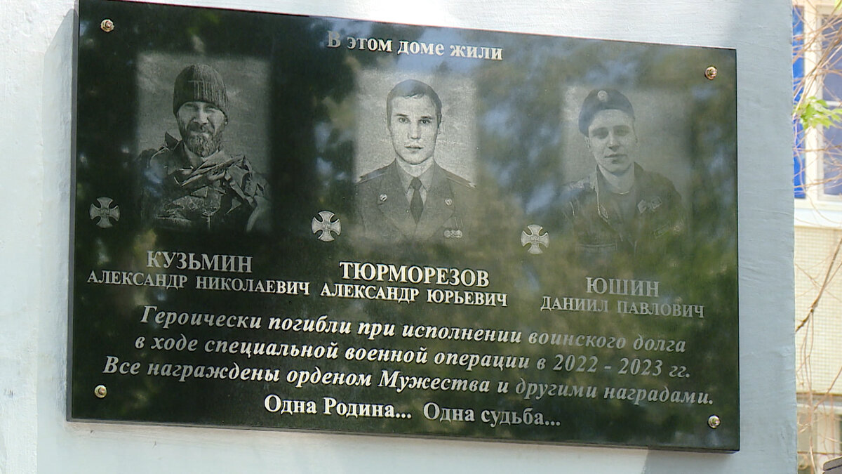 Мемориальную доску трем бойцам специальной военной операции установили на доме, в котором последние годы жили Александр Тюрморезов, Александр Кузьмин и Даниил Юшин. Ребята с нашего двора. На церемонии присутствовали их родные, друзья, соседи и учителя. Они жили в одном доме. Трое защитников Отечества – Александр Тюрморезов, Александр Кузьмин и Даниил Юшин. Они хоть и не дружили, но хорошо знали друг друга. Ведь жили в одном дворе. Самому старшему – Александру Тюрморезову – было 38 лет. Всю свою жизнь он посвятил спорту и военной службе. За время участия в специальной военной операции был удостоен медали Александра Суворова, медалей I и II степени «За воинскую доблесть». Награжден орденом Мужества посмертно. «Он был в Сирии, после Сирии он дальше служил. Продолжал в танковых войсках. После того, как отслужил в танковых, он перешел в артиллерию. Я думаю, он вообще для нас всех совершил подвиг. Он вообще молодец. Он дал пример нам, детям своим, мы гордимся им. Это не напрасная смерть, одн