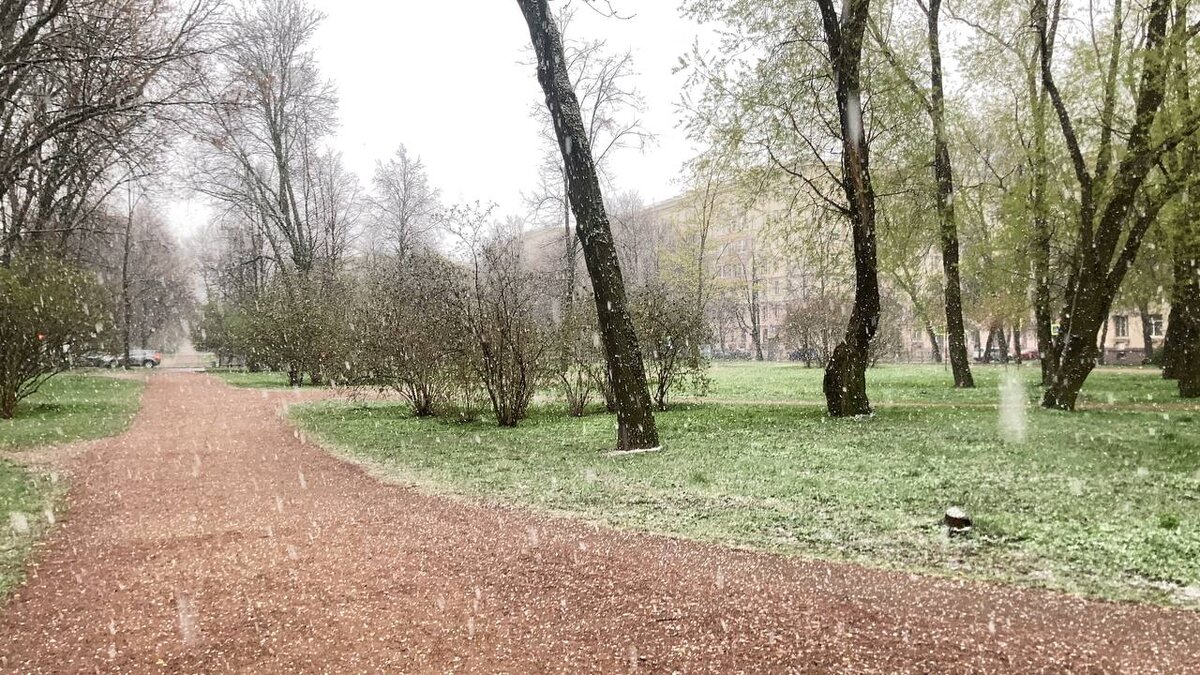 В Северной столице весна не спешит вступать в свои права. Во вторник, 7 мая, в Петербурге прошла майская гроза со снегом вместо дождя. Кадры нетипичного сочетания явлений природы сняли читатели «Форпоста». Так, в Московском районе города не только выпали зимние осадки, но и разыгралась пурга. При этом местные жители сообщили, что слышали раскаты грома. Снег выпал также в Красногвардейском районе города — его запечатлели на Ржевке. Автомобилисты публиковали видео снегопада на ЗСД. Напомним, сегодня днём зимние осадки выпали и в центре Петербурга. На земле они не задерживались, но покрыли тонким слоем припаркованные автомобили.