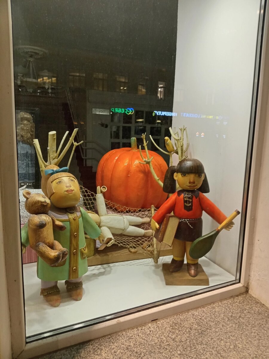 Проходила я мимо необычного места. Есть красивые куклы и инсталляции, а есть пугающие. Всё стоит у окна и можно спокойно полюбоваться. Внутри я никогда не была. Не тянет особо. Хотя представления марионеток или куколок на руках бывают очень интересными. Вы были в театре кукол?