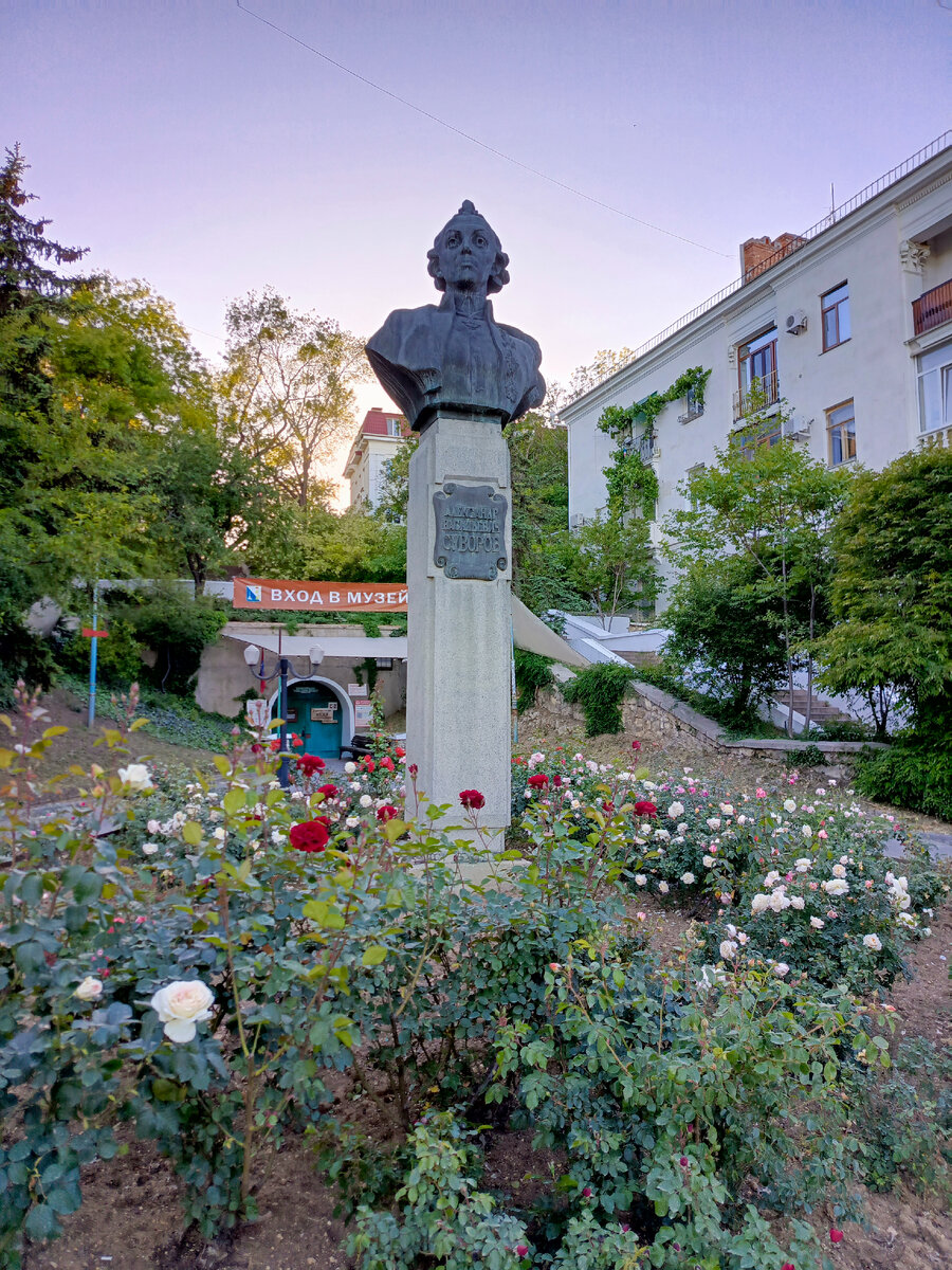 Сегодня побываем в небольшом, но интересном сквере. Ну что, пойдем прогуляемся? Попасть в сквер можно со стороны площади Суворова. А вот и сам Суворов, точнее памятник: А нам нужно спуститься вниз: Весь город сейчас в розах: А вот и сквер: В самом начале нас встречает часовня: Пойдем дальше по скверу: И встречаем памятник Пушкину: Раньше площадь Суворова называлась площадью Пушкина. Дальше мы видим два памятника: Справа: Сквер возник сразу после ВОВ на месте разрушенных зданий. 6 мая 1974 года был назван в честь Василия Ивановича Бузина. Он был начальником городского отдела милиции, погиб на боевом посту при обороне Севастополя в 1942 году. Дальше видим еще один памятник: Установлены таблички с фамилиями: Все таблички с фамилиями я показывать не буду. А рядом находится еще один памятник: Был открыт в августе 2013 года. Надписи сделаны на украинском языке. На памятнике надпись: "Ваш подвиг во имя жизни сделал вас бессмертными". Пойдем дальше: Встречаем еще один памятник: А