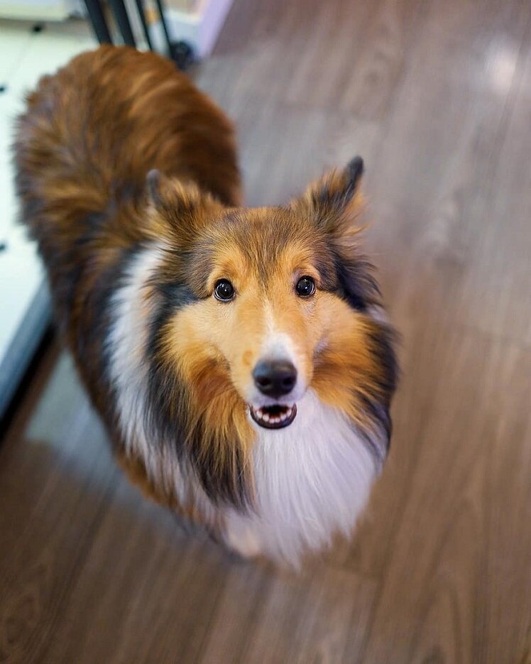 Отказник, годовалый шелти, действительно недавно стал "жителем клиники". Мальчишку нашли голодным-холодным, привязанным к забору у клиники рано утром, когда шли на работу. Хозяева так и не нашлись.