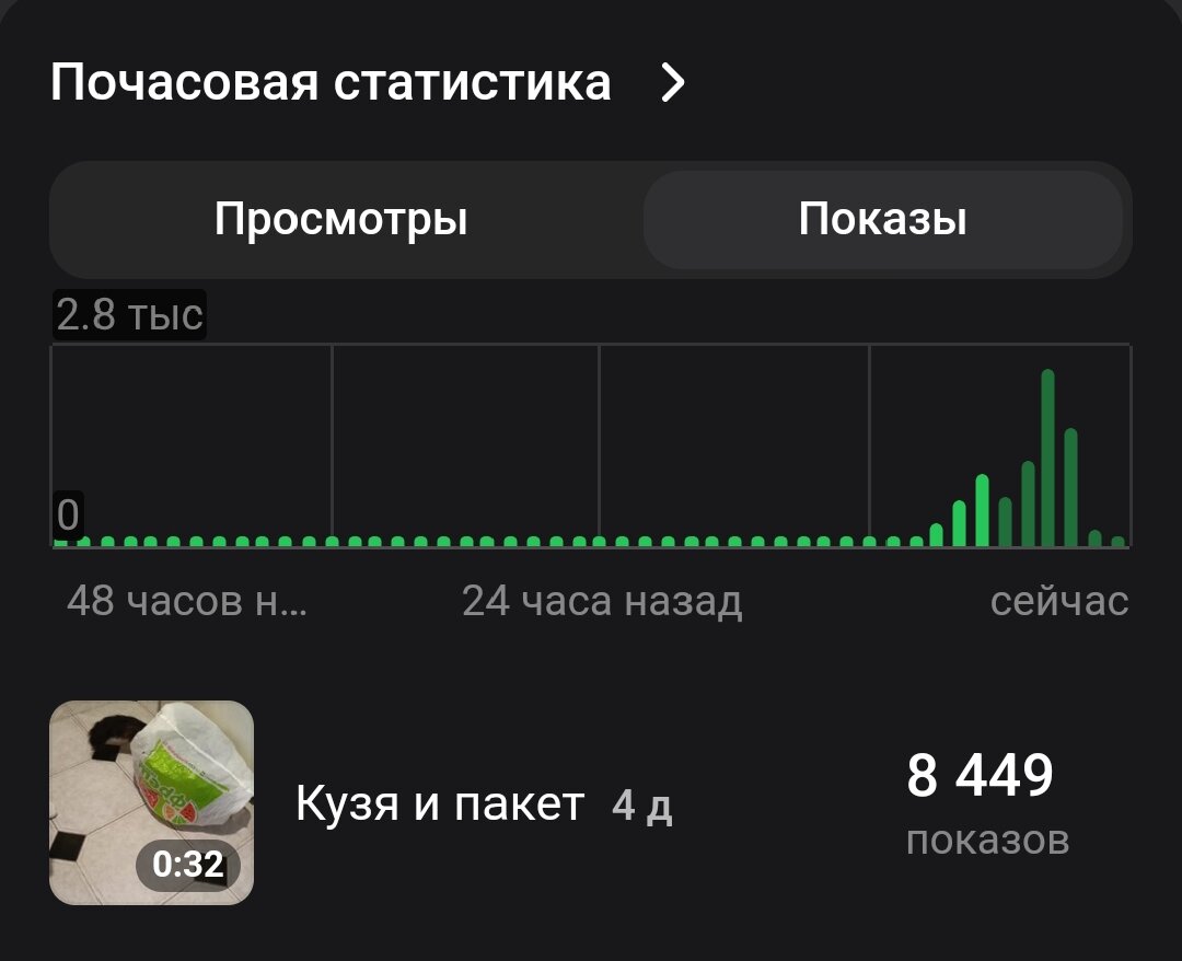 Расскажу какое я себе классное место для сна устроил и как дзену понравилось мое видео. Всем привет! Вчера утром я устроил хозяйке концерт. Она почему-то сильно не вдохновилась. А мне просто скучно стало, хозяин ушел на работу после мини отпуска. Песни попел свои и спать пошел. У нас все еще странная погода, поэтому я долго сплю. И вчера я тоже очень тихо и долго спал. Даже не слышал как хозяйка убирала. Хотя, в этот раз повезло и она убрала без пылесоса. После обеда проснулся, пришел к хозяйке, сел рядом на стульчик. А позже мне стало скучно и очень захотелось на улицу, поэтому я устроил еще один концерт. Вчера очень просили показать концерт, в итоге даже получилось на видео записать. Правда, здесь я немного постеснялся. Обычно намного больше таких басистых пений, а тут потише. Вечером еще очень сильно удивился, когда посмотрел в статистику: Видео про пакет что-то очень понравилось дзену. Ему дали много показов и его посмотрело довольно много людей. Другие видео, а тем более с