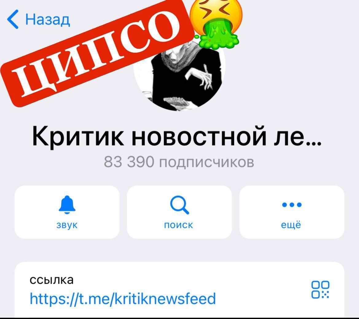Очередная площадка украинских ЦИПсО для распространения фейков и материалов с дискредитацией политического руководства РФ, созданная в октябре 2021 г. Идём по порядку: 1) Накрутка аудитории ботами. До 24 февраля 2022 г. включительно на канале отсутствовали какие-либо просмотры, происходила только накрутка подписчиков. Даже после набора аудитории в 80 тыс. читателей (уже 176 тыс.), количество просмотров составляло 1/10. 2) Основные источники распространения информации данной площадки. «Критика» цитируют и репостят на взаимной основе не только аффилированные с ЦИПсО каналы и паблики: «Генерал СВР», «Русский декаданс», «Кремлевская табакерка» и др., но и такие отъявленные украинские русофобы, как А.Геращенко (сайт «Миротворец») и предатель А.Невзоров. 3) Характер распространяемой информации. Отработка поставляемых гуровским командованием тезисов – публикуемые посты зачастую перекликаются друг с другом. 4) Контент продвигаемых тезисов. При семантическом анализе постов прослеживается то