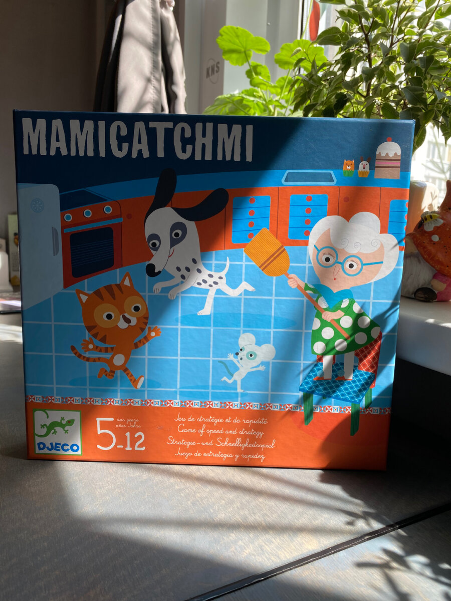Здравствуйте, дорогие Подписчики и Гости канала! Отдельную полочку в моем доме и место в сердечке занимают игры от Djeco. Игрушек этого производителя у Ромки предостаточно. Именно с этой фирмы я и начала закупаться впрок. Всевозможные пазлы, с милейшими рисунками так и просились в руки и, я не могла им отказать. Это уже потом, намного позже появились Janode, Hape, Zoch и моя обожаемая HABA. Но в начале были Djeco. Сегодня расскажу вам о довольно редкой, но периодически всплывающей игре, которую я с большим трудом поймала. Экземпляр мне попался в прекрасном сотоянии и я с удовольствием вам его продемонстрирую. Речь идет о MAMICATCHMI. Открываем коробочку, а там: 1 дерево 1 конура 1 стул 1 мышиная нора 2 кубика 4 фигурки 26 жетонов Цель игры: заработать 10 жетонов. Готовимся к игре: Вам нужно буде собрать все конструкции и расставить их перед игроками. Каждый игрок получает 5 жетонов и 1 фигурку. Остальные жетоны будут лежать рядом. Оставшиеся фигурки нужно поставить между любыми