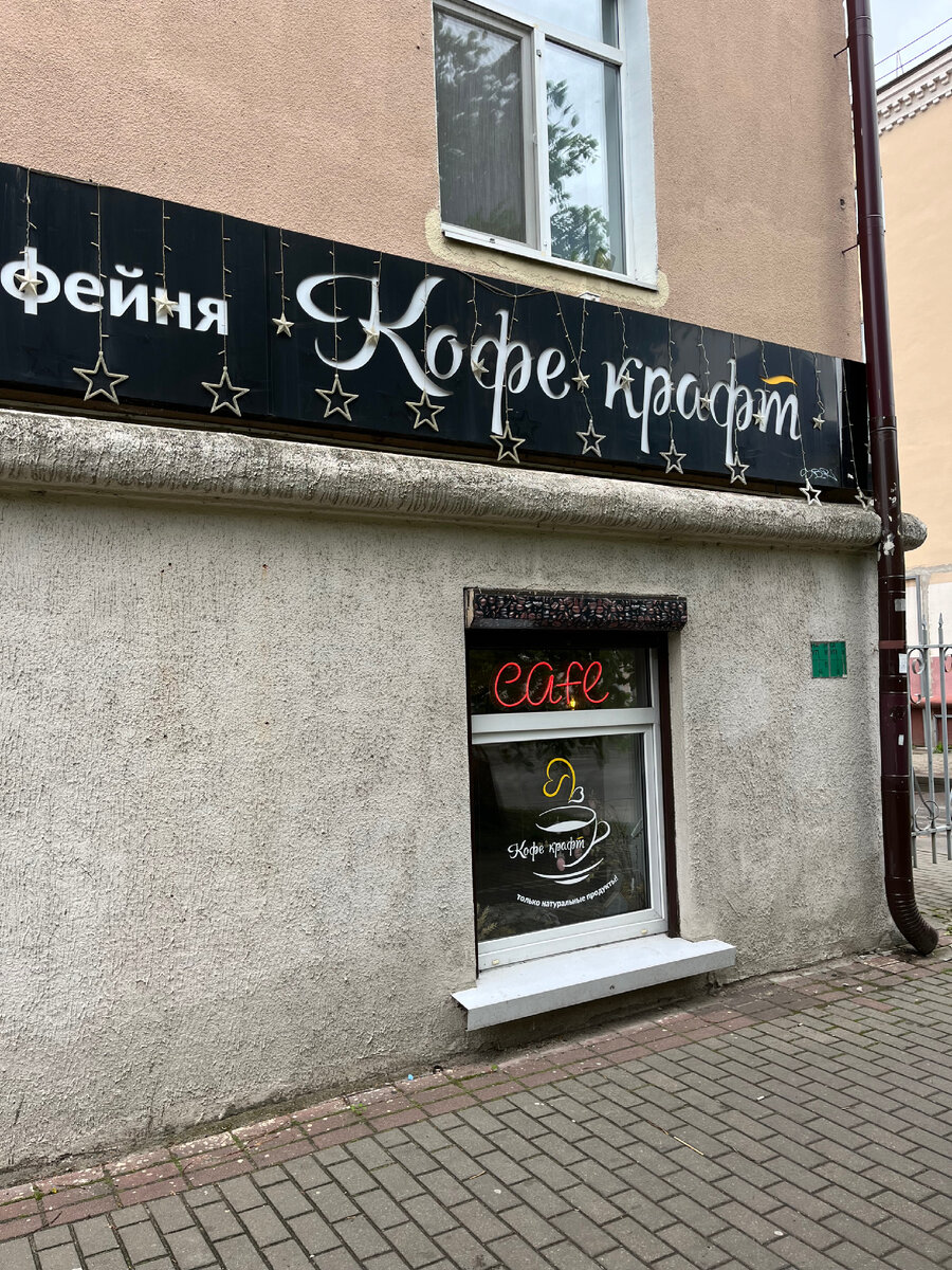 Еще в первый свой визит сюда мне местные показали одно кафе, которому стоит уделить внимание. Находится оно на Ул Советской, 107, рядом с площадью Ленина. Вот его уличная вывеска: Внутри очень уютно, здесь стоит целый стенд с кружками постоянных посетителей😊👍.. Такая вот у хозяина заведения фишка— для близких друзей есть персональные чашки👌 Приятная инсталляция на окне кафе, посвященная недавно прошедшей Пасхе. А в мой зимний визит тема была здесь новогодняя)) и что мне здесь больше всего понравилось- это кофе, сваренный на песке. Другие кофейные разновидности я в этом кафе не пробовала, поэтому ничего не могу сказать, но слышала как посетители хвалили все. Я лишь говорю про гранатовый кофе, который пила сама в оба свои приезда. Вчера я снова туда сходила, чтобы насладиться этим прелестным ароматом! Поэтому - будете в Бобруйске, рекомендую заглянуть туда. Это не в качестве рекламы, мне там не приплачивают, 😊 просто делюсь своим мнением). Кстати, вай-фай у них есть, что о
