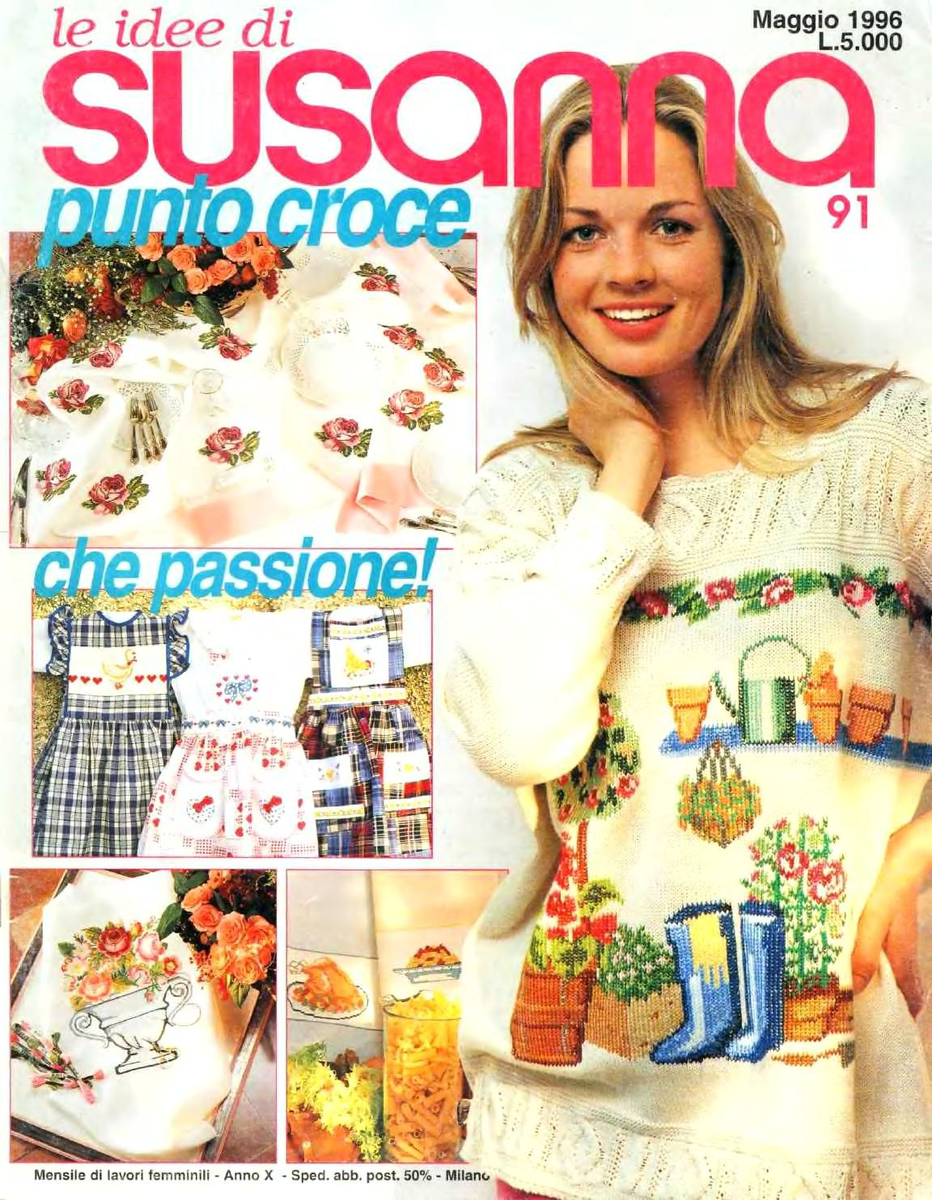 В бесплодных попытках расхламиться натыкаешься на журналы - и всё!!! Расхламление закончилось и ты снова рассматриваешь журнал! Именно так получилось и с этим журналом, который называется le Idee di SUSANNA №91-1996 (Вышивка, вязание, рукоделие): И вот несмотря на то, что журнал пролежал 28! лет, вдруг пришла в голову мысль, что надо бы оттуда часть взять и воплотить (мысль журнал отдать, продать, выбросить как-то улетучилась, не успев занять свое место в мозгу). И вот представляете, нашла там очень милые вышитые прихватки (знаю, что многих от слова прихватки уже просто коробит, но из песни слов не выкинешь): Сразу захотелось повышивать и выбрала для этой цели перчики. Имеющаяся канва не подошла, мелковата на мой взгляд. Ни на Озоне, ни в Леонардо подходящей канвы не нашла, но зудит же, ни жить, ни быть надо сделать (через 28 лет 🤣), поэтому полезла в старые ткани и их обрезки. Нашла кусок ткани бежевого цвета и сочла, что подойдет. Вот эта ткань с вышивкой: На обратной стороне обве
