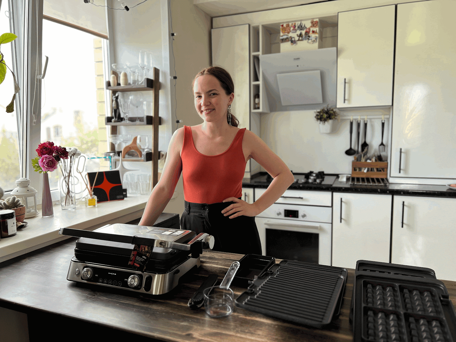 Однажды я купила на рынке мясо и попробовала сделать из него стейк. Это было много лет назад и получилось просто ужасно! Просто тогда я не знала главных правил: Зато теперь я готовлю стейки не хуже чем в ресторане! И если раньше жарила их на сковороде-гриль, то теперь у меня появился вот такой супер-корабль: Это электрический гриль BRAUN Multigrill 9 Pro. И честно – мясо на нем получается просто вааау какое вкусное! Намного вкуснее привычного шашлыка! Сегодня я вас с ним познакомлю, вы посмотрите комплектацию и мы вместе пожарим стейки. Если останутся вопросы – обязательно пишите их в комментариях. Моя модель называется Электрогриль Braun CG9167, но у бренда есть разные модели. Что в комплекте У меня такой техники никогда не было, поэтому мне самой было очень интересно его распаковывать и первый раз готовить. У нас тут, кроме самого “корпуса”: И отдельно сфотографировала гладкую плиту: Все панели (плиты) с антипригарным покрытием, они легко меняются и их можно мыть в посудомойке! Это у