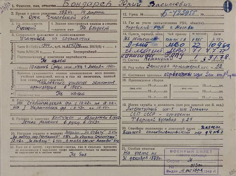 Проект посвящен юбилеям выхода в свет легендарных произведений известных фронтовых писателей Бориса Васильева («А зори здесь тихие…», 1969 г.), Юрия Бондарева («Горячий снег», 1969 г.), Константина Симонова («Живые и мертвые», 1959 г.) и Валентина Катаева («Сын полка», 1944 г.). В новом разделе на сайте Минобороны представлены материалы из личных дел писателей-фронтовиков, их учетно-послужные карточки и наградные листы, а также документы на реальных прототипов героев книг, вошедшие в основу сюжетов военной прозы.