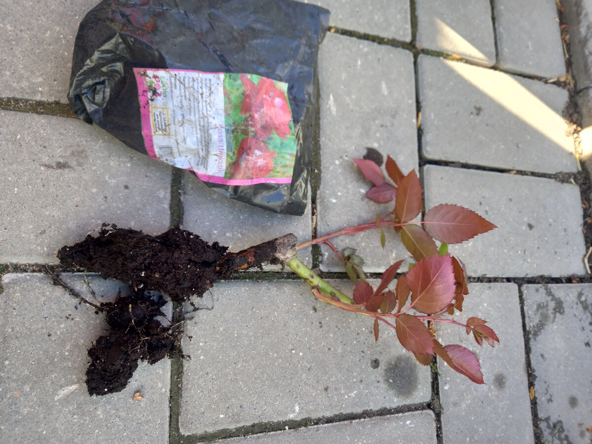 Сама себе постоянно бурчу, что уж совсем розы садить некуда. И все же весенний сезон без "обновок" не проходит. Хорошая розочка от "Поиска" была куплена в супермаркете "Да" по обычной для меня цене в 399 р, а также приехали 16 подружек из Пензы по 350-450 р. Качеством саженцев довольна. Пока не уверена в соответствии сорту барышни из "Поиска". И тут в "Светофоре" увидела розули, от "Царство Роз". Благо!!, что попала уже на остатки продаж, нагребла бы.... Как же было уйти без саженца, да по 210р ? А никак... Роза Николь дома. Чайно-гидридная красотка, красная с серебристо-белым реверсом. И хорошо, что одна. Выбирала по побегам, вершкам, чтоб не переростки, да гармонично рапологались... А то, что уж очень короткий корневой пакет не удивило. Думалось, корни подвернуты, а может ЗКС. Несколько лет назад была куплена пара ЗКС в этом магазине по 245 р, хороши саженцы оказались, от Агрохолдинга "Московский". Свеже купленная Николь озадачила, уверена, что ее подруги