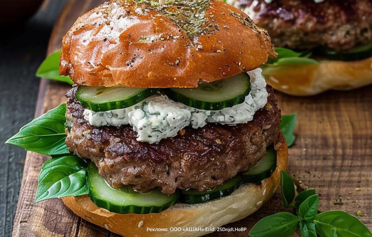 Май без загородного барбекю? Ну уж нет! Открываем сезон сочными бургерами! Этот рецепт — находка для тех, кто обожает готовить на открытом огне. Котлетки получаются такими нежными и сочными. Давайте попробуем? И не забывайте, что наш барбекю-марафон в самом разгаре! Узнайте о гриле всё и даже больше — подписывайтесь и следите за обновлениями! Для приготовления вам понадобятся: фарш из говядины — 400 г; фета — 100 г; лук — 1 шт.; семена зиры — 1 ст. л.; приправа для барбекю — 1 ст. л.; булочки для бургеров — 4 шт.; огурцы — 2 шт.; яблоко — 1 шт.; любимый соус или айвар — 4 ст. л.; листья базилика — горсть. Готовим! Шаг 1 Огурцы нарежьте кружочками. Шаг 2 Фету подавите вилкой. Листья базилика промойте и обсушите. Шаг 3 Половину луковицы мелко нарежьте. Шаг 4 Яблоко вымойте, разрежьте пополам, удалите сердцевину и нарежьте очень мелкими кубиками. Шаг 5 В отдельной миске смешайте фарш и лук. Добавьте приправу для барбекю и зиру. Тщательно перемешайте. Шаг 6 Сформируйте из фарша котлетки. Ш
