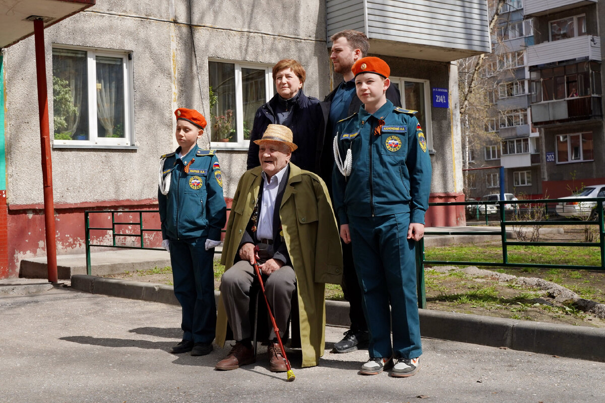 Владимир Николаевич Синягин был призван на фронт в 1943 году. Воевал на 2-м Украинском фронте. Принимал участие в боях за взятие Берлина. Победу встретил в Польше. Награжден орденом «Отечественной войны» II степени, медалями «За взятие Берлина», «За Победу над Германией». В исполнении музыкантов и солистов военного оркестра Новосибирского военного института Росгвардии прозвучали фронтовые песни. Поздравить фронтовика лично с наступающим праздником пришел секретарь местного отделения партии Октябрьского района, депутат горсовета Игорь Титаренко. «В Октябрьском районе – 14 ветеранов, к каждому пришли с поздравлениями. Традиция проводить такие личные парады во дворах зародилась в 2020 году, в период пандемии. И она прижилась, мы видим реакцию, улыбка ветерана дорого стоит. Мы – внуки и правнуки героев Великой Отечественной войны, тружеников тыла, детей войны. Для нас это тоже всё в сердце. Бывая в зоне спецоперации, отдаешь себе отчет, насколько тяжело освобождать территории от нацистов