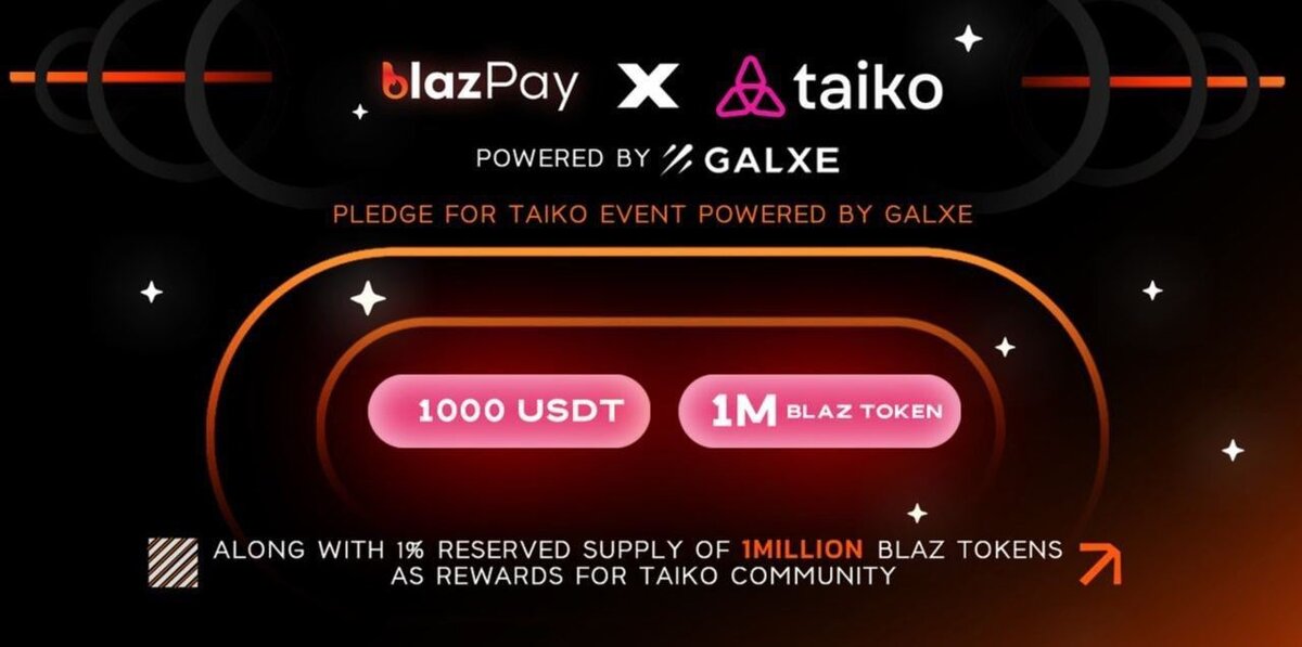 Taiko - это *ZK Rollup, который облегчает перенос контрактов с Ethereum. Проект привлек $22 миллиона от таких инвесторов, как OKX Ventures, Kucoin Ventures и другие. Недавно команда объявила о запуске новой тестовой сети под названием Hekla, использующей механизм Contestable Rollup (BCR), аналогичный предыдущей сети Katla (поддержка которой закончится 10 мая). Taiko планирует запуститься в основной сети с использованием архитектуры BCR. А что мы знаем по Blazpay? Это платформа объединяеющая платежный шлюз, кошелек, функцию свопа, оплату доменов и специальное решение для управления, покупки и продажи NFT напрямую с использованием бумажных валют. Отлично! А теперь нам пора отработать сразу пару квестов: тут и здесь. Общее время выполения - 20 мин. Включаемся! *Роллап (Rollup) - это способ улучшения работы блокчейна, чтобы сделать его быстрее и эффективнее.