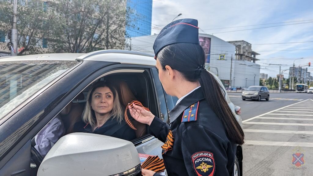Патриотическая акция прошла в Центральном районе Волгограда и на мосту через Волгу в Среднеахтубинском районе. Полицейские вручили символ Победы в преддверии Дня Победы. Фото: пресс-служба ГУ МВД России по Волгоградской области В Волгограде сотрудники Госавтоинспекции вручили водителям георгиевские ленты. Патриотическая акция прошла в Центральном районе. Автомобилистам вручили символ Победы и рассказали о правильном ношении ленты, гордости и народной памяти о погибших на войне. Водителям рекомендовали соблюдать правила дорожного движения, вручили памятки о безопасном вождении и правилах перевозки детей. Такая же акция прошла и на мосту через Волгу в Среднеахтубинском районе. Смотрим «Вести. Волгоград»: smotrim.ru/Volgograd Подписывайтесь на наши страницы в соцсетях: Telegram, ВКонтакте, Одноклассники, Дзен