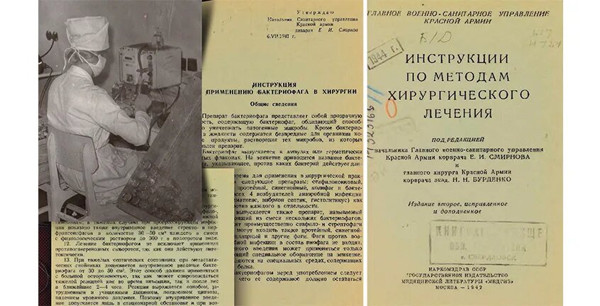История фаговой терапии с связана с трагическими событиями Великой Отечественной войны 1941-1945 гг. Именно в эти годы, в условиях тотальной нехватки антибактериальных препаратов (на начало войны в СССР еще не было своего пенициллина) было принято решение о налаживании массового производства бактериофагов для лечения инфекций у бойцов Красной армии. Особое внимание было направлено на наработку фагов, уничтожающих бактерии, вызывающие кишечные инфекции (холеру, брюшной тиф, дизентерию, сальмонеллез), что было связано с неизбежной в полевых условиях антисанитарией. Чуть позже в госпиталях стали применять и бактериофаги против раневых инфекций, так хорошо зарекомендовавшие себя во время русско-финской войны. Применение этих препаратов позволяло сократить до недели пребывание раненого солдата в полевом госпитале. Всего же за годы войны предприятия, созданные на базе советских бактериологических институтов, изготовили для фронта более 200 тыс. литров «раневых» бактериофагов! Но на этих про