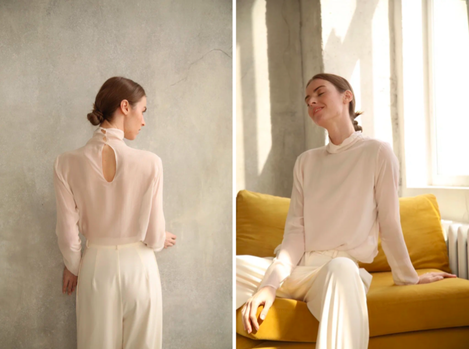 Если вам надоели однотипные аутфиты с быстрыми трендами, то предлагаю перейти на сторону стабильно уважаемого, женственного (в лучшем смысле этого слова) и не нарочито элегантного стиля. Чтобы вам было удобнее, подобрала образы для разных случаев жизни: работа, свидание, торжество, прогулка. №1 Собираемся на работу Если вы ходите в офис и ломаете голову над тем, чтобы соблюдать дресс-код, не страдать от жары и выглядеть стильно, то выручит невесомая, шелковая блуза. В сочетании с брюками палаццо или струящейся юбкой миди получаем комфортный образ, в котором чувствуем себя легко и уверенно в контексте обстоятельств. Дополняем крупной сумкой, в которую поместится все необходимое, строгим пучком и сдержанными украшениями. Блуза №2 Собираемся на свидание Используем сногсшибательное оружие — платье-комбинация длины макси из 100% шелка! Всего одним элементом одежды изящно подчеркиваем все самое лучшее, что есть в женском теле. И не упускаем шанса влюбить в себя первый (или очередной) раз муж