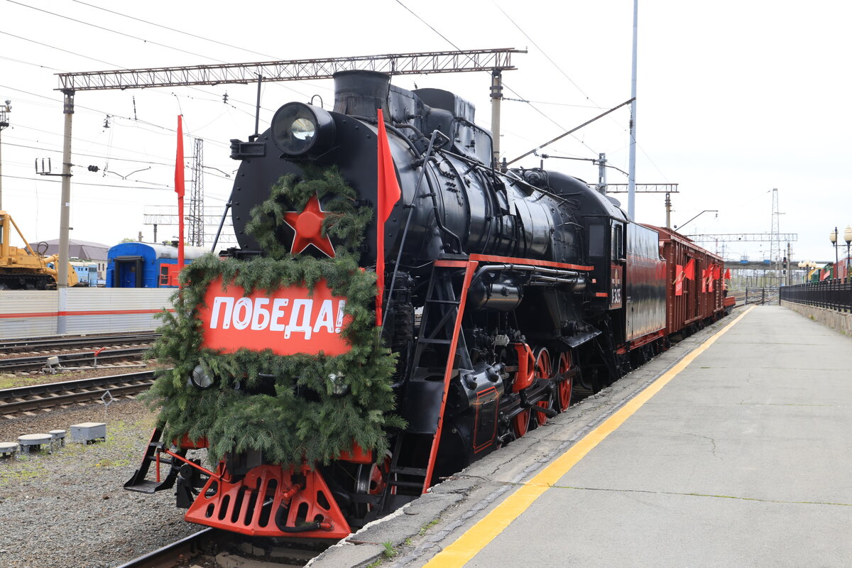 Поезд побывал уже в нескольких регионах России прибыв на Южный Урал, где его смогли увидеть жители Магнитогорска и Карталов. Сегодня «Поезд Победы» прибыл на челябинский вокзал. На перроне поезд встретили праздничной программой воссозданной в атмосфере 1945 года. Южноуральцы и ветераны Великой Отечественной войны, посетившие праздничное мероприятие, смогли увидеть театрализованную программу с показом концертных номеров и выступлением творческих коллективов. В рамках мероприятия присутствующие гости возложили цветы в память о погибших в годы войны.