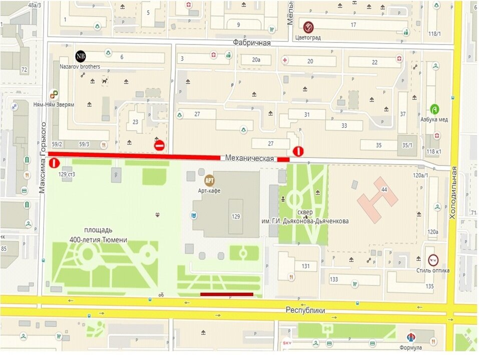 В администрации Тюмени сообщили о перекрытиях дорог 9 мая. Движение будут ограничивать для проведения разнообразных праздничных мероприятий в рамках Дня Победы. С 7 утра до 11 вечера нельзя будет проехать по улице Механической от дома № 27 до Максима Горького. Объезжать участок предлагается по Холодильной, Республики и Максима Горького. Частично будут закрыты парковки на Республики у здания № 129. Ограничения на период прохождения военной техники по городу будут вводиться с 19 до 20 часов. Машины поедут через центр города — от площади 400-летия Тюмени с заездами в спальные районы, в том числе в заречной части города (ул. М. Горького — ул. Республики — ул. Мельникайте — обход Тюмени — ул. Ямская — ул. Льва Толстого — ул. Луначарского — ул. Республики — ул. Челюскинцев — ул. Ленина — ул. Мориса Тореза — ул. Республики — ул. Монтажников — ул. Федюнинского — ул. Монтажников — ул. Широтная — ул. Пермякова — ул. 50 лет Октября — ул. Осипенко — ул. Челюскинцев — ул. 2-я Луговая — ул. Щербаков