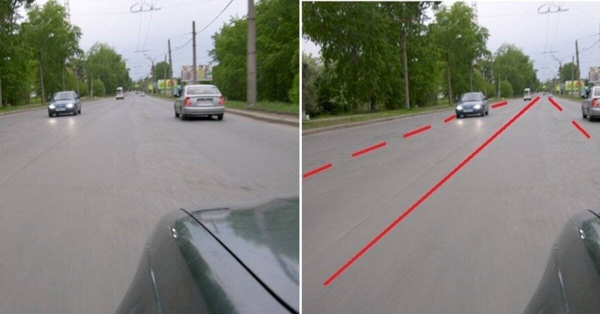 Если нет разметки, водитель "рисует" ее в своей голове.