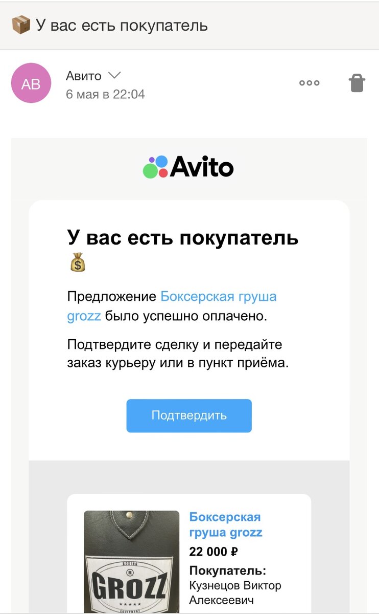 Второй случай произошел уже с Авито, и опять, очень важное уточнение, мошенники не переписываются в самом приложении, они пишут в другие мессенджеры, как оказалось потом, чтобы их аккаунт не заблокировали и они имели возможность дальше искать жертв на просторах этих площадок. В этот раз мне позвонил молодой человек, его заинтересовала покупка боксерской груши, в разговоре он спросил, нет ли на ней дырок, какое у нее крепление, а отдаю ли я это крепление в комплекте, а могу ли я ему на WhatsApp прислать видео товара со всех сторон? Вот еще одна продуманность со стороны мошенников, он как обычный покупатель задает уточняющие вопросы, просит дополнительные фото и видео, сразу отпадают все сомнения. Я отправила видео и вечером он мне ответил, что его все устраивает, но он не сможет приехать лично, хотя по телефону я спросила, где вы находитесь и сможете ли вы приехать, он сказал что сможет, потому что живет в Подольске и есть машина, вечером он написал, что оформит доставку Авито и все по новой, пришлите почту, ради интереса я отправила ему почту и туда пришло похожее сообщение, точно так же с логотипом, с почтой, с карточкой товара, с его контактами Кузнецов Виктор Алексеевич и в этот раз даже с указанием улицы и номером дома, так же мошенник написал про банки, карты которых лучше вводить. И оба мошенника не скрывают, что они мошенники, после каждого письма на почту, я что-то отвечала этим людям в мессенджерах, первая женщина все таки что-то ответила и спросила, почему я завершила операцию, ведь там всего лишь нужно было ввести код из сообщения, второму человеку я так и написала «вы мошенник!» он ничего не ответил, но и отрицать этого не стал. Хочу сказать, что мошенничество в интернете становится все продуманней и продуманней, но единственное, чего они не учитывают, что у них все под копирку, это продуманный и сложный механизм, каждый из них присылал мне скрины с оплатой, где совпадает сумма, дата, время и даже этот скриншот не поможет вам определить мошенника от настоящего покупателя. Так же они присылают ссылку на сайт “Авито”или “Юла”, в котором есть четкие инструкции как работать оплата и доставка, изучая эту тему, оказалось, что можно сделать копию того или иного сайта, в котором будут малейшие отличия от настоящего, а для этого нужно лишь поменять один символ в коде, мошенники шагают в ногу с прогрессом и в ногу с теми, кто защищает население от них, они придумывают схемы все изощреннее и изощреннее, все это только для того, чтобы наживаться на обычных людях, становится все страшнее и страшнее за свои персональные данные и электронные счета. Спасибо банкам, которые совершенствуют свою систему безопастности, быстро реагируют и так же быстро блокируют личный кабинет. Спасибо службе поддержки Авито, в которой мне ответили давольно поздно, но не смотря на это ответили быстро и все объяснили. И вот несколько правил, которые я усвоила из этих двух ситуаций и которые мне объяснили в поддержке.