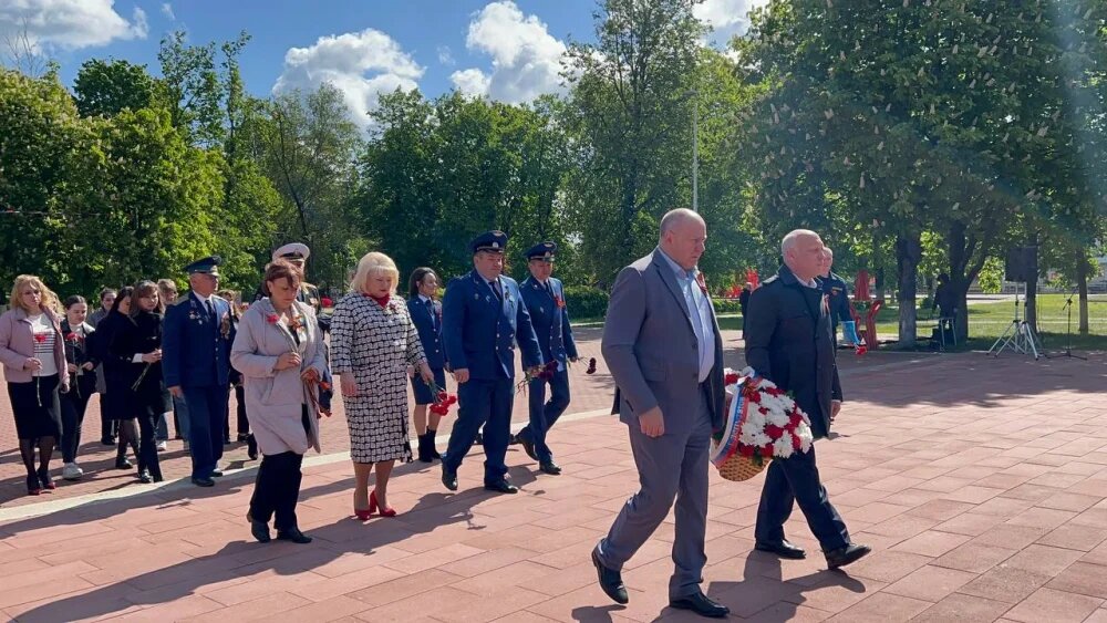 В Брянске возложили цветы к братской могиле погибших воинов в среду, 8 мая, накануне праздника Великой Победы. Как сообщили в мэрии, торжественное возложение цветов состоялось в сквере имени В.И. Ленина в Володарском районе Брянска. Депутаты Брянской облдумы, Брянского горсовета, коллектив Володарской районной администрации города, представители трудовых предприятий и общественных организаций района, военнослужащие и учащиеся общеобразовательных заведений возложили цветы к Вечному огню и почтили память павших минутой молчания. Фото: БГА Глава Володарской районной администрации Брянска Светлана Бледнова поздравила всех присутствующих с наступающим Днём Победы: «Для всех нас это особенный праздник. За коротким, но ёмким словом «Победа» стоит мужество и героизм миллионов советских солдат, напряжённый и тяжёлый труд в тылу. Пройдут года, десятилетия, но легендарный подвиг – Победа в Великой Отечественной войне – навсегда останется в нашей памяти. Это наша история, история семьи, история на