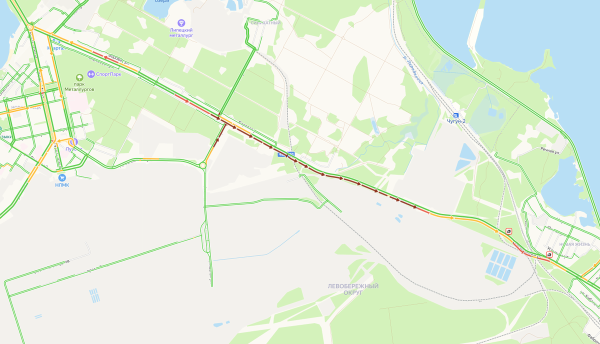 В Липецке этим вечером, 8 мая, на грязинском шоссе образовалась внушительных размеров пробка. Судя по данным навигаторов, причиной затора длиной в шесть километров стали два ДТП у микрорайона Новая Жизнь. — Зоя вся стоит, по трассе в сторону Грязей пробка. Объезжайте через тамбовскую трассу, — написала в соцсетях липчанка. Еще несколько не столь больших заторов к концу рабочей недели возникли в разных частях города. Традиционно, пробки образовались на развернутом в обратную сторону участке Первомайской, Плехановском спуске, пересечении Московской и Циолковского, Металлургов, а также у памятника Танкистам.