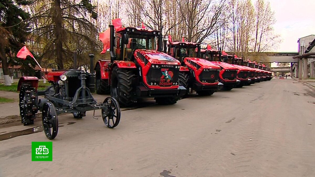 [ Смотреть видео на сайте НТВ ] Сегодня в Петербурге провели парад тракторов. Этим утром колонна ярко-красных и суперсовременных К-7М объединились в колонну и торжественным маршем проехали по памятным местам блокадного Ленинграда. Для Кировского завода День Победы — это особый день. Как бы дежурно эта фраза не звучала. Тысячи работников завода сражались на линии фронта, участвовали в народном ополчении, воевали в партизанских отрядах и продолжали работать в блокадном Ленинграде, обеспечивая фронт техникой и боеприпасами. Сегодня героям-заводчанам отдали дань уважения. Торжественная часть церемонии была недолгой. Люди, то и дело оглядывались на колонну красавцев-«Кировцев», которая стояла за ними. Десять мощных, современных машин готовились к автопробегу по местам боевой славы: от Кировского завода до Красного села. Это практически линия обороны Ленинграда в годы войны. И возглавил колону ветеран тракторостроения, первый советский трактор «Универсал-2». В общей сложности таких «Универса