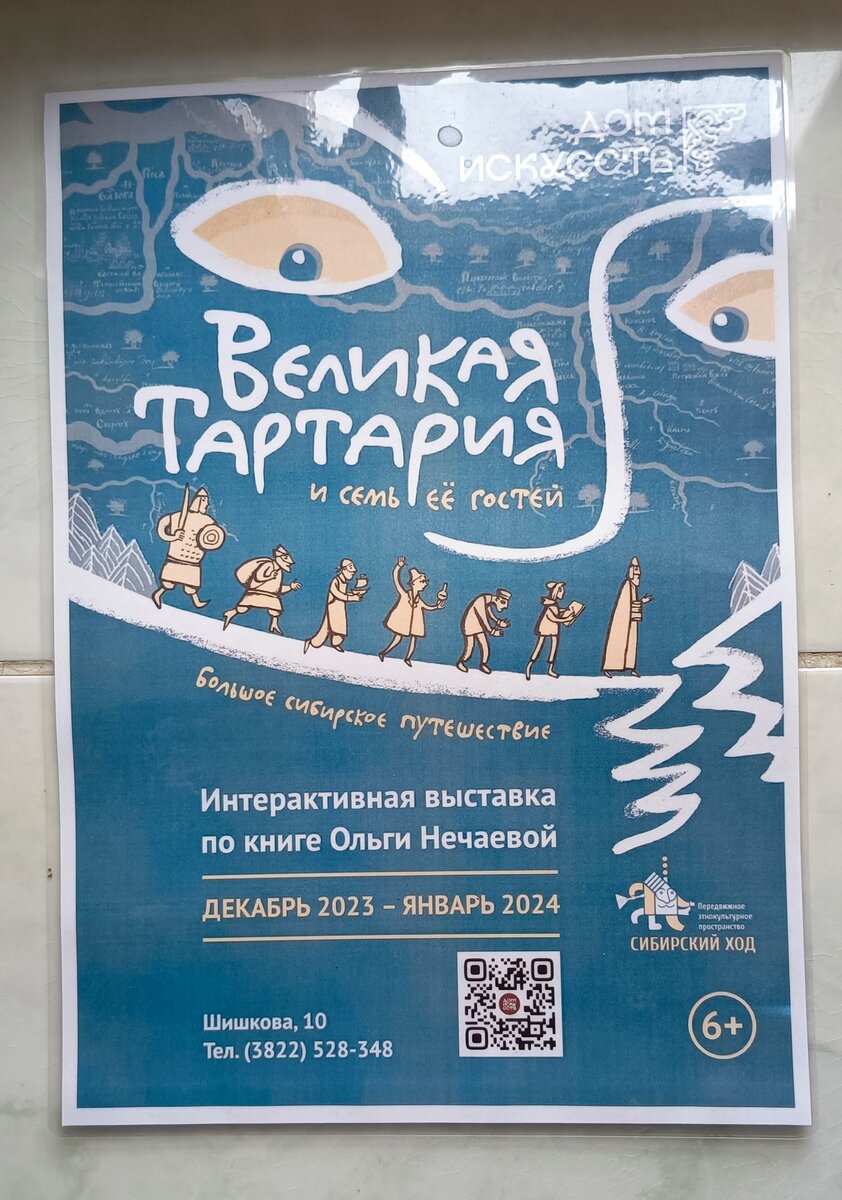 В музее Шишкова я посетила еще выставку, посвященную книге Ольги Нечаевой «Великая Тартария и семь ее гостей». Посетила выставку случайно. Пока ходила по музею, то обнаружила закрытую на ключ дверь с афишей выставки. Поинтересовалась у кассира что это за выставка. Кассир очень удивилась зачем мне вообще это надо и вообще эта интерактивная выставка для детей, которую иногда проводит автор книги. В конце концов кассир продала мне билет на эту выставку и открыла дверь.