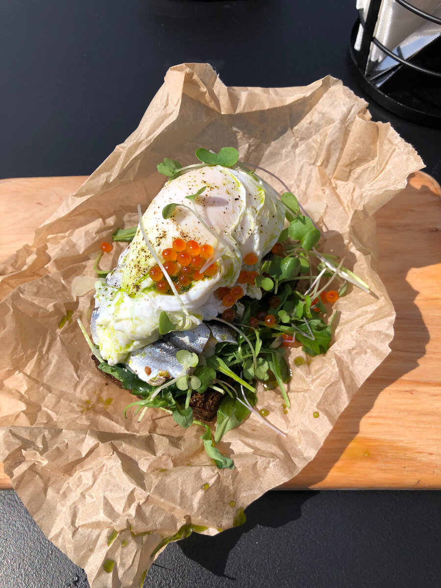 Вы не поверите, но на заглавном фото — просто «бутерброд с килькой». Так значится в меню. А подают сию красоту в ресторане Paat, по-русски «Лодка». Чтобы было ясно, какая именно, все сразу уточняют «перевёрнутая», потому что именно так выглядят и вывеска, и надпись на меню, и сам ресторан. Хотя, возможно, дело ещё и в том, что здесь «переворачивают» ваши представления о привычных вещах. Об одной из них — привычном «бутерброде с килькой» — я уже упомянула. Главная же — привычное представление о том, из чего, собственно, и складывается привычное представление о любом ресторане. А это, во-первых, кухня: рецептура, качество продуктов, время ожидания заказа, температура и внешний вид блюд при подаче. Во-вторых, интерьер: атмосфера в ресторане, его стиль, качество мебели и посуды, наличие живой музыки и цветов, обстановка в туалете (да-да, именно в туалете — как правило, это очень красноречивый показатель). И в-третьих, окружение: район, в котором находится ресторан, и, конечно, вид, который